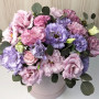 Букет из 15 розовых и сиреневых эустом в коробке в Волжском