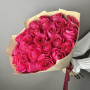 На фото букет из 25 малиновых роз. В составе: роза 25 шт, крафт-бумага 1 шт, атласная лента 1 шт, . Все цветы свежие и ароматные, букет красиво оформлен и отлично подходит для подарка. Доступна доставка цветов или самовывоз.
