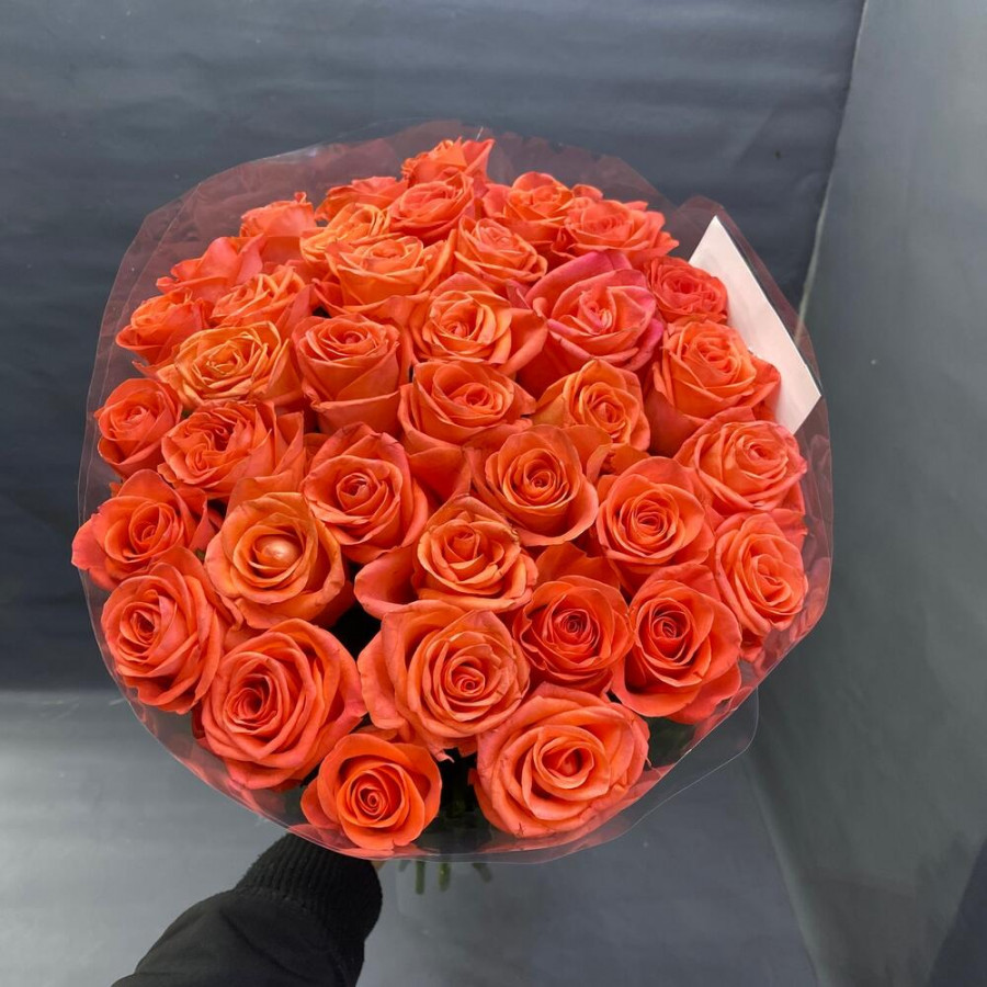 На фото букет из 29 коралловых роз. В составе: роза 29 шт, дизайнерская упаковка 1 шт, атласная лента 1 шт, . Все цветы свежие и ароматные, букет красиво оформлен и отлично подходит для подарка. Доступна доставка цветов или самовывоз.