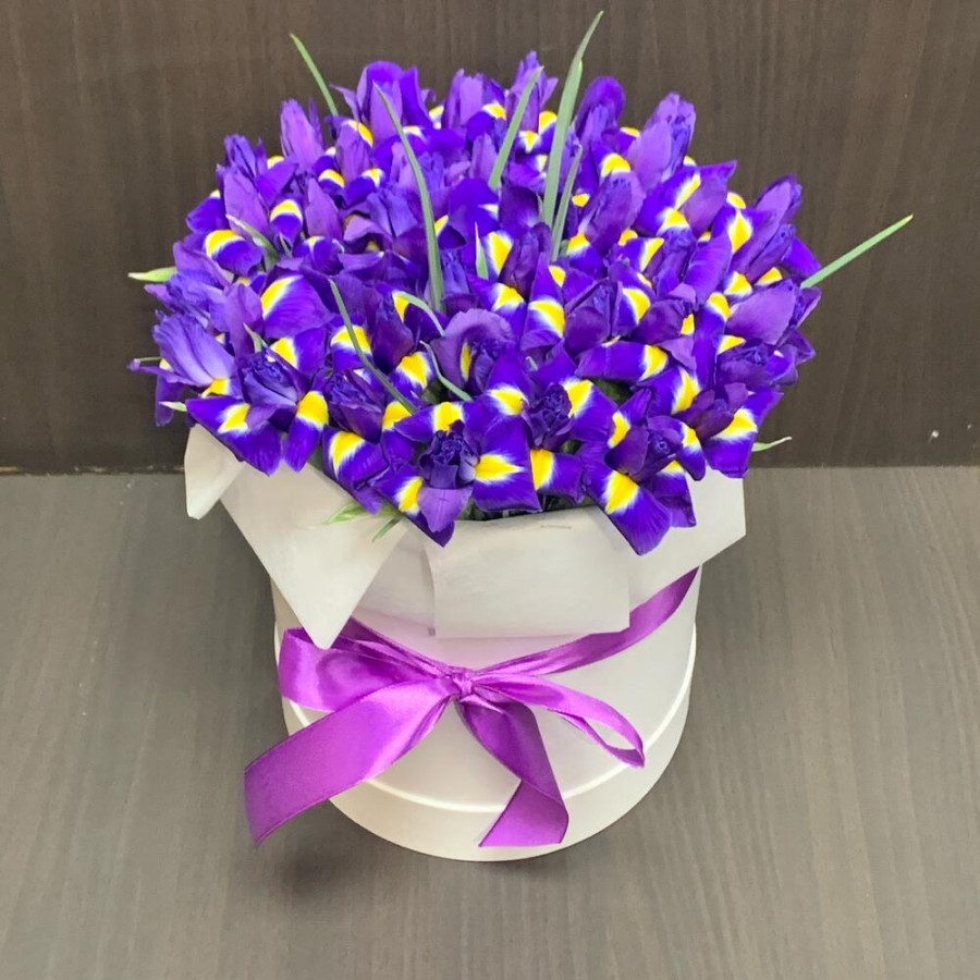51 фиолетовый ирис в шляпной коробке в Волжском