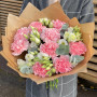 Букет из белой эустомы и розовых гвоздик в Волжском
