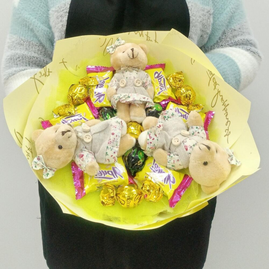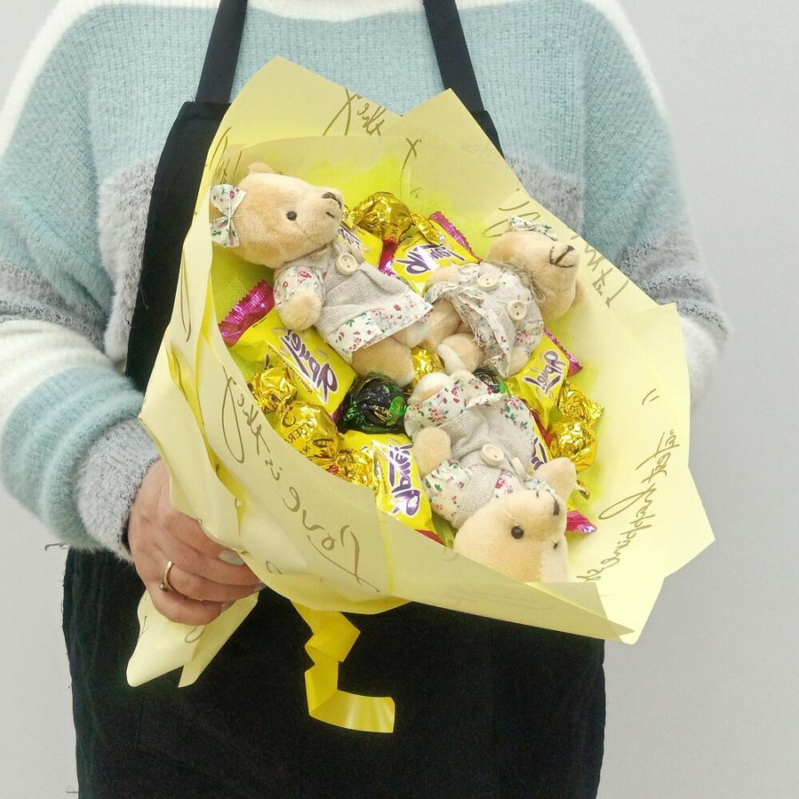 Букет из игрушек медвежат и конфет в Волжском
