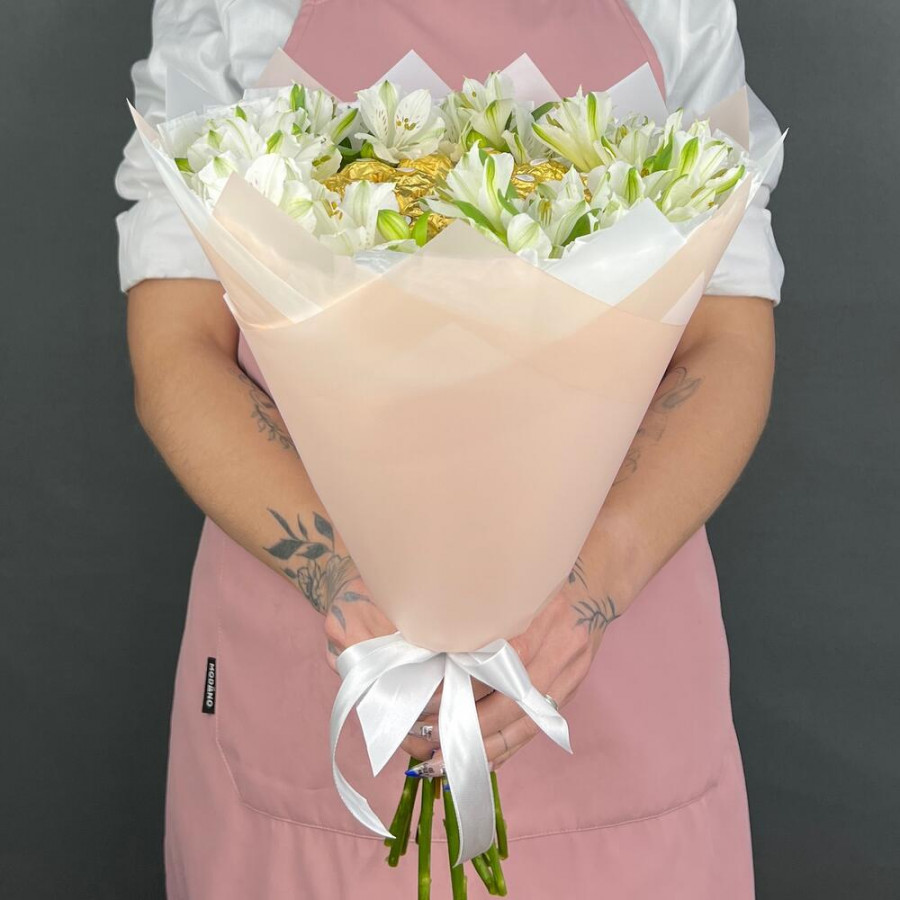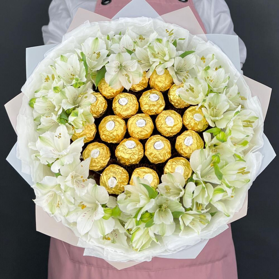 Букет из конфет Ferrero Rocher и и альстромерии в Волжском