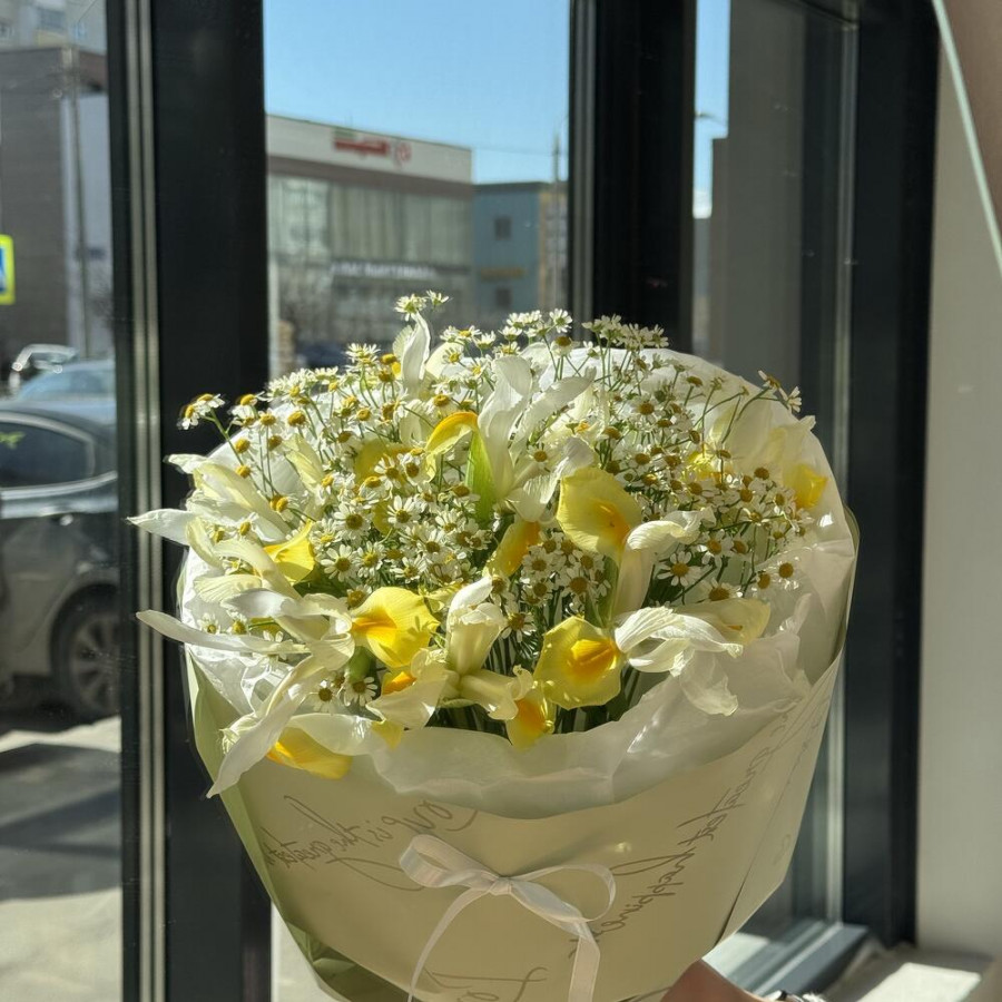 Букет из желтых ирисов и ромашек в Волжском