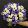 Букет из белых роз и синих ирисов